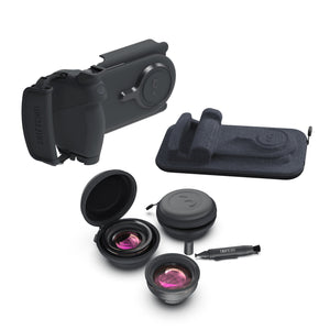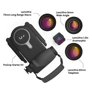 Includes: ProGrip, ProGrip Accessories Kit, LensUltra 60mm Telephoto, LensUltra 16mm Wide-Angle, LensUltra 75mm Long Range Macro, LensUltra 1.33x Anamorphic, Lens Cleaning Kit, Lens Pouch